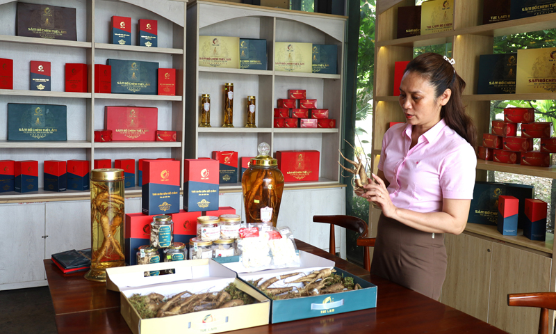 Chị Trần Thị Xuân Dung và những sản phẩm từ sâm Bố Chính Tuệ Lâm.