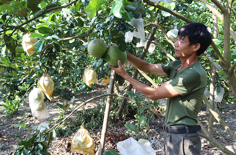 Mô hình xây dựng vườn mẫu trồng bưởi da xanh và ổi của của Chi bộ Tân Lợi, xã Hóa Hợp