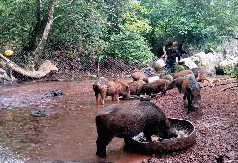 Mô hình chăn nuôi lợn rừng lai đem lại thu nhập ổn định cho chị Hồ Thị Xăm, bản Cây Cà, xã Trường Sơn.