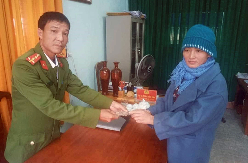 Công an xã An Ninh trao trả lại số tiền bị đánh mất cho chị Võ Thị Liên, thôn Hoành Vinh, xã An Ninh.