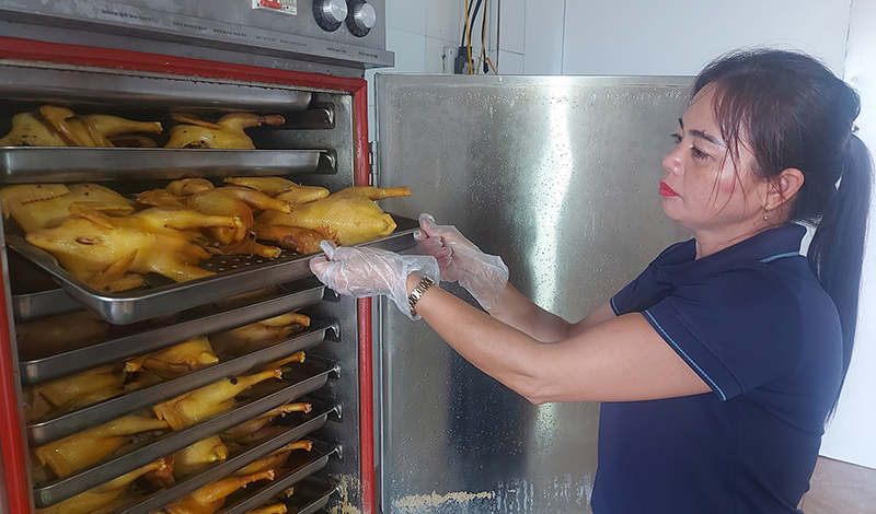 Hiện sản phẩm đã đạt chuẩn OCOP 3 sao cấp tỉnh và được nhiều người tin dùng, sử dụng. Tuy nhiên, gần đây nhận thấy món gà ủ muối đang gây sốt trên mạng, trong khi trên địa bàn huyện, gà thả vườn cũng là một trong những sản phẩm chất lượng được nhiều người đánh giá cao nên chị đã mày mò lên mạng internet để tìm hiểu cách làm gà ủ muối với mong muốn tạo ra sản phẩm chất lượng cho người tiêu dùng, đồng thời tạo việc làm, tăng thu nhập cho các thành viên của HTX.
