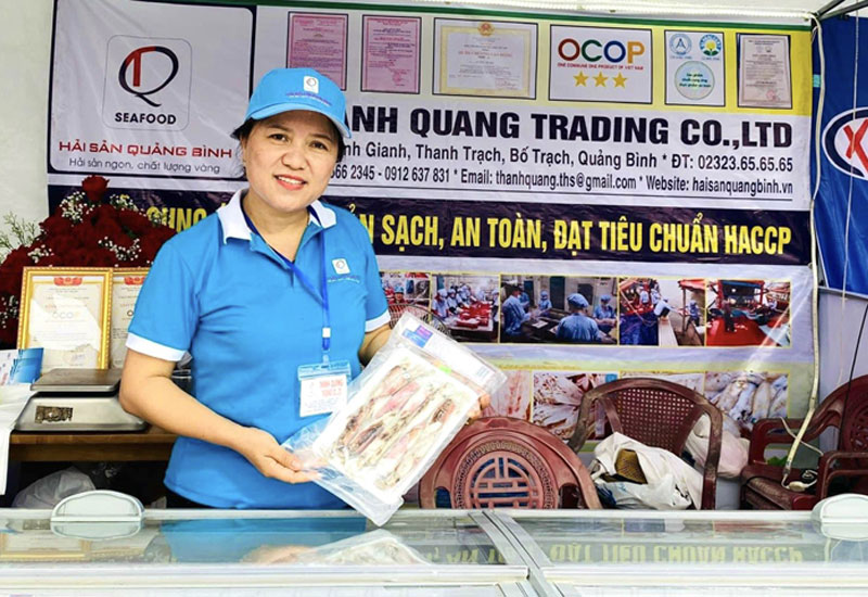 Nhiều năm qua, ông Bùi Thức Quang, Giám đốc Công ty TNHH Dịch vụ và Thương mại Thanh Quang (xã Thanh Trạch, Bố Trạch) đã không ngừng đầu tư mở rộng mô hình thu mua, chế biến thủy hải sản và xuất khẩu. Đến nay, công ty của ông có 1 nhà máy cấp đông (20 tấn/ngày), hệ thống kho bảo quản lạnh sản phẩm (400 tấn sản phẩm). Những sản phẩm của công ty luôn đáp ứng được "5 không": Không sử dụng chất bảo quản, không sản phẩm trôi nổi, không sản phẩm kém chất lượng, không ngừng nâng cao phát triển sản phẩm mới, không chạy theo số lượng để bảo đảm chất lượng.
