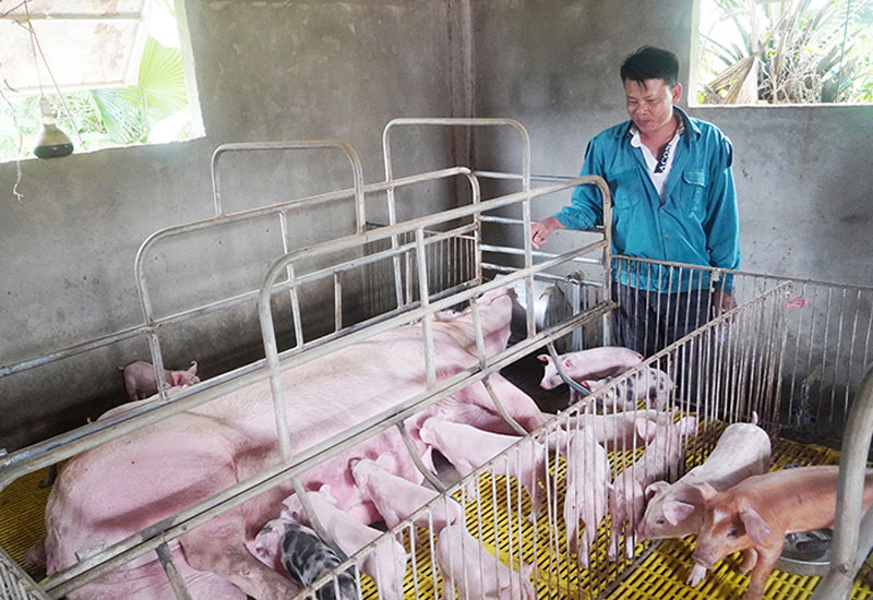 Trước đây, anh Cao Xuân Vinh làm nhiều ngành nghề để kiếm sống. Công việc bấp bênh, thu nhập không ổn định nên năm 2014 anh quyết định mua lợn nái về nuôi. Trước khi nuôi lợn quy mô lớn, anh đã tự học hỏi kinh nghiệm chăn nuôi, thú y tại các lớp đào tạo nghề, những người chăn nuôi lợn trên địa bàn và qua các phương tiện thông tin. “Thời điểm đó, tôi dốc hết vốn liếng trong nhà cộng với số vốn vay mượn để xây dựng chuồng trại rộng trên 220m2, có mái che, quạt, hầm biogas và mua thêm giống lợn siêu nạc về nuôi. Sau một thời gian, đàn lợn nhà tôi sinh sản tốt, tổng đàn ngày càng tăng lên”, anh Vinh chia sẻ.