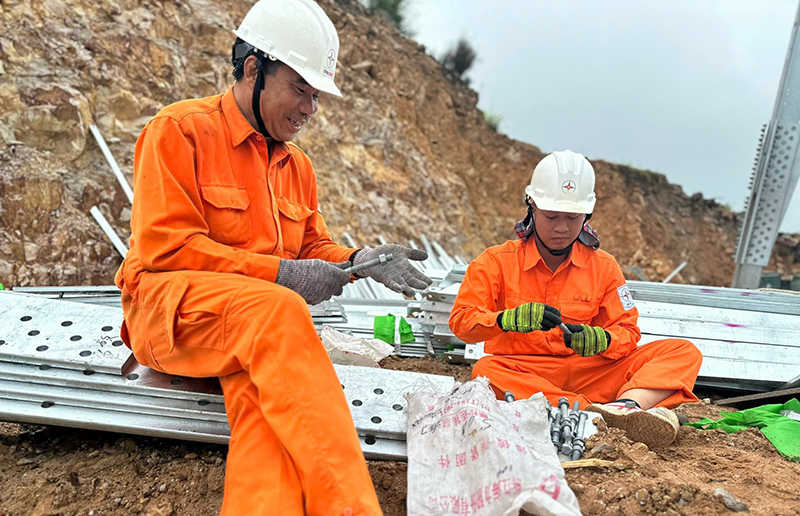 Cựu chiến binh Đoàn Khắc Phục tận tình hướng dẫn các đồng nghiệp trẻ trên công trường xây dựng đường dây 500kV mạch 3 Quảng Trạch-Phố Nối.