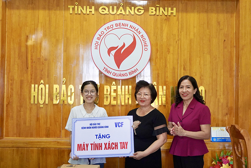 Để động viên Quỳnh Nguyên vượt qua khó khăn, vươn lên trong học tập, Hội Bảo trợ bệnh nhân nghèo tỉnh đã kết nối với các nhà tài trợ trao tặng em 1 máy vi tính xách tay và 5 triệu đồng tiền mặt. Đây là nguồn động viên quý giá để Quỳnh Nguyên có thêm động lực vượt qua hoàn cảnh, tiếp tục đạt được những thành tích cao trong học tập, theo đuổi ước mơ của mình.