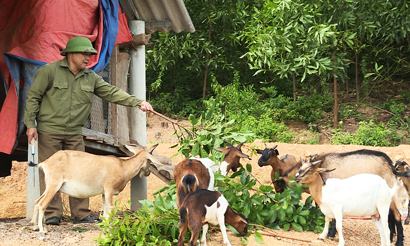Chia sẻ với chúng tôi về thành quả sau nhiều năm cần cù lao động, ông Thủy bồi hồi nhớ lại quãng thời gian đầy gian khó: Năm 1988, ông hoàn thành nghĩa vụ quân sự và phục viên trở về quê hương. Điều kiện địa phương và gia đình khi ấy còn nhiều khó khăn nên mọi thứ thiết yếu phục vụ đời sống, sản xuất còn thiếu thốn. Nhưng những năm tháng chiến đấu gian khổ không cho phép ông cam chịu với cuộc sống nghèo khó. Sau khi tìm hiểu, nhận thấy địa phương còn nhiều diện tích đất chưa được khai hoang, ông quyết định phát triển kinh tế gia đình từ vườn, rừng kết hợp chăn nuôi.