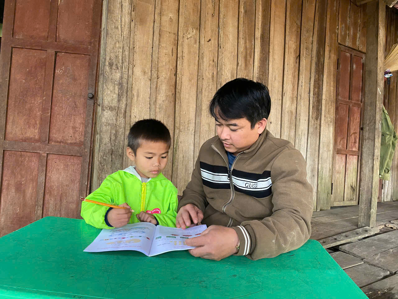 Nhưng đằng sau những bước chân trên hành trình gieo chữ, phía sau những đêm dài soạn giáo án dưới ánh đèn dầu, sau những ngày tháng lặn lội vận động học sinh đến lớp, là một người phụ nữ luôn lặng thầm làm điểm tựa cho thầy. Vợ thầy, chị Cao Thị Thanh Thanh, không chỉ là người giữ lửa trong gia đình, mà còn là hậu phương vững chắc, giúp thầy yên tâm công tác, toàn tâm, toàn ý với sự nghiệp giáo dục vùng cao. Chị Thanh chia sẻ: “Từ khi xác định chồng làm công việc dạy trẻ Mầm non - là con em của đồng bào dân tộc thiểu số - thì với tôi, là một người vợ, tôi luôn cố gắng chăm lo gia đình, chăm sóc mẹ chồng và chăm lo con cái học hành đầy đủ để chồng hoàn thành nhiệm vụ khi công tác xa. Tôi hiểu rằng, nếu không có một người luôn ở phía sau vững vàng, anh ấy sẽ khó có thể toàn tâm, toàn ý cho các em nhỏ nơi vùng cao biên giới”.