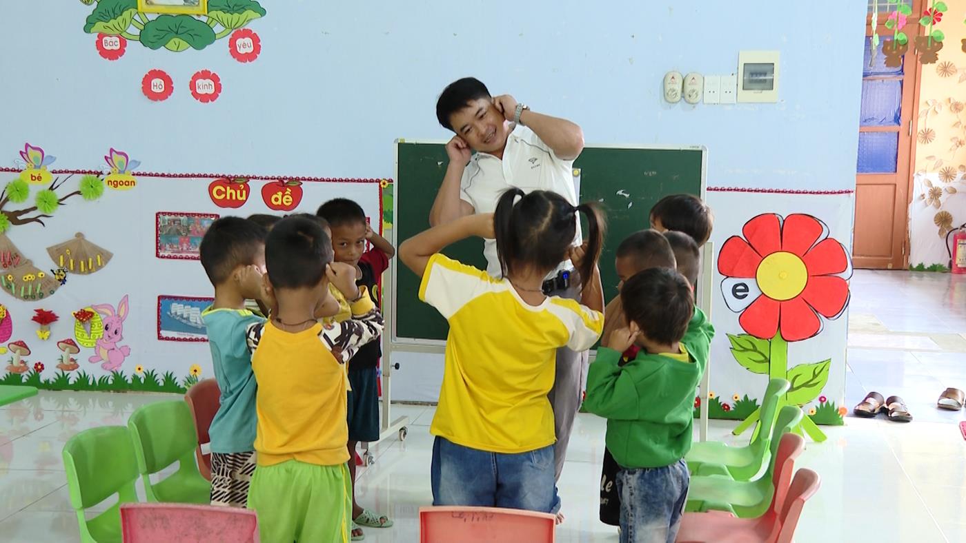 Thầy giáo Cao Văn Chương và các em học sinh trong một tiết học