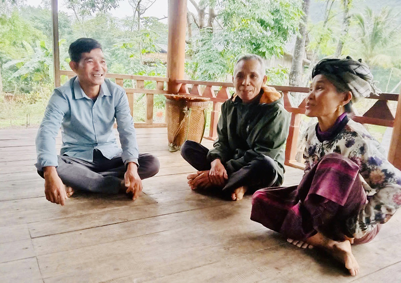 Bí thư Chi bộ bản K-Rét Hồ Đam (bên trái) vận động bà con tập trung làm ăn, phát triển kinh tế.