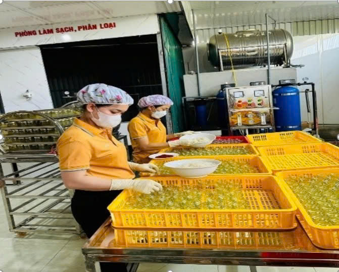 Hơn 06 năm về trước, trên đầu chị Vũ Thị Hoàn xuất hiện nấm, gàu khiến chị ngứa ngáy và tóc ngày càng rụng nhiều. Thấy vậy, chị vô cùng lo lắng, điều trị nhiều lần nhưng bệnh không thuyên giảm. Chị thử lấy quả bồ kết, lá sả, bồ hòn, hương nhu, dầu tràm, gừng tươi… nấu lên để gội đầu. Chỉ sau một thời gian ngắn, nấm trên đầu hết sạch, tóc chị Hoàn cũng dần mọc lại dày và mượt hơn, chị cũng không còn cảm giác ngứa ngáy da đầu. Tiếng lành đồn xa, rồi hàng trăm người bệnh đã liên hệ đến chị. Trong quá trình chế biến thảo dược trị bệnh nấm, ngứa da đầu, chị Hoàn không ngừng học hỏi, nghiên cứu công thức, tìm thêm các loại thảo dược để bổ sung cho bài thuốc của mình. Đến nay, đơn vị có 04 sản phẩm đạt OCOP gồm: Dầu gội thảo mộc, sữa tắm, nước rửa chén và bột ngũ cốc dinh dưỡng. Riêng sản phẩm dầu gội thảo mộc của HTX đã đạt tiêu chí OCOP 4 sao vào năm 2022. Để nâng cao chất lượng sản phẩm, HTX đã đầu tư mở rộng nhà xưởng, mua thêm máy móc nâng cao sản lượng, chất lượng, đáp ứng nhu cầu thị trường. Cùng với đó, HTX cũng đã phối hợp với các đơn vị liên quan xin cấp quyền sở hữu trí tuệ cho sản phẩm, hoàn thiện hồ sơ cần thiết, quy hoạch lại vùng nguyên liệu sản xuất để đáp ứng tiêu chí của sản phẩm OCOP 4 sao. Với việc được công nhận sản phẩm OCOP 4 sao, sản phẩm dầu gội thảo mộc có thêm “tấm vé” thông hành uy tín không chỉ ở thị trường trong nước mà còn xuất khẩu ra nước ngoài.