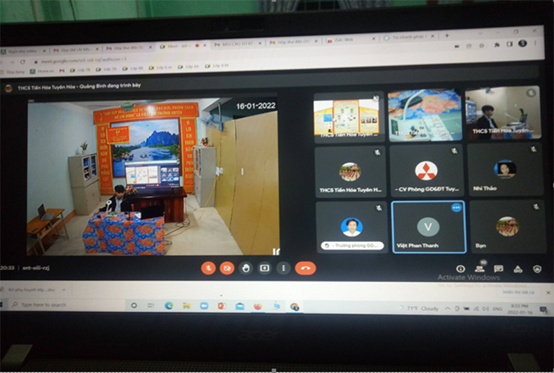 Học sinh của Trường THCS Tiến Hóa dự thi Hội thi Sáng tạo khoa học kỹ thuật dành cho học sinh năm 2022 bằng thức thức trực tuyến do thời điểm diễn ra đang bị dịch Covid 19