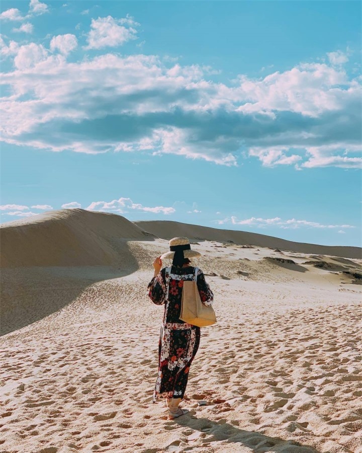 Sáng sớm hoặc chiều tối là khoảng thời gia thích hợp nhất để dạo chơi ở cồn cát Quang Phú. (Ảnh: myle.286)