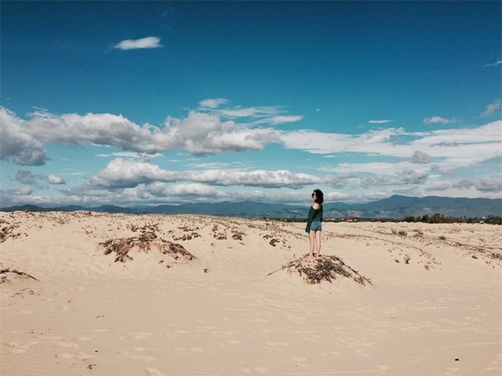 Khoảng không rộng lớn với nền trời trong xanh phía trên và bãi cát tuyệt đẹp dưới chân, cồn cát Quang Phú đã tạo nên một bối cảnh không thể lý tưởng hơn để các bạn trẻ tha hồ sáng tạo ra vô vàn kiểu ảnh ấn tượng.