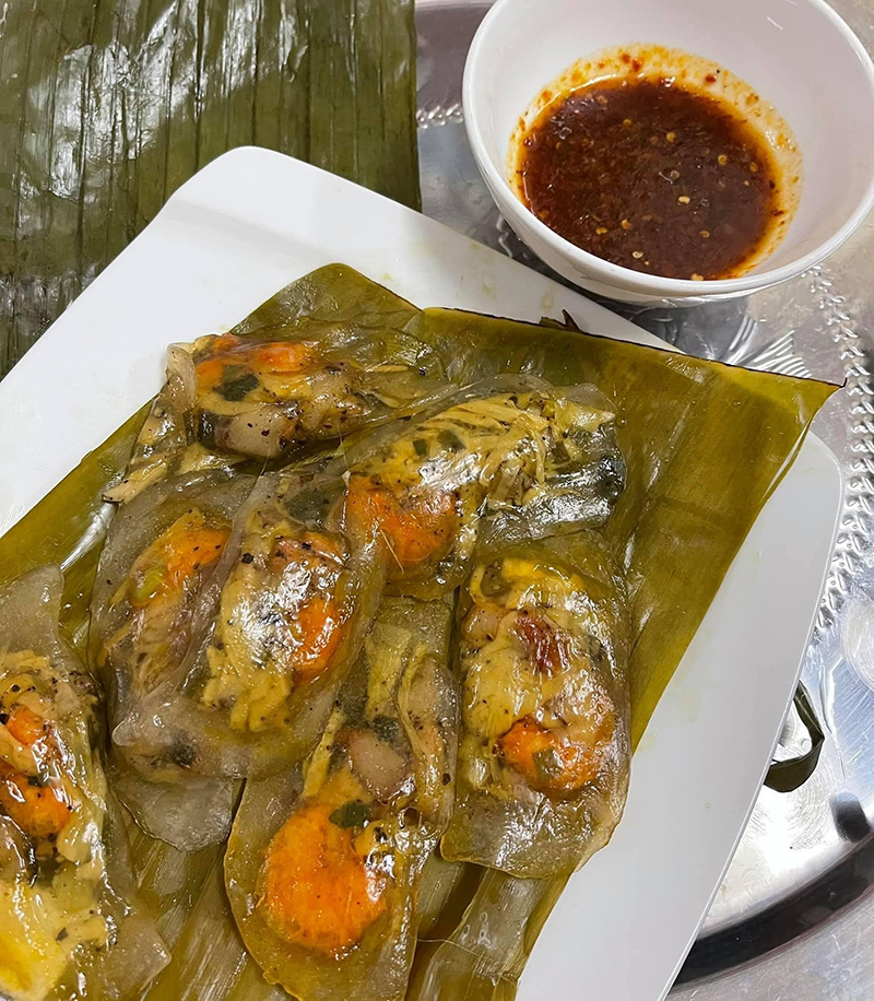 Bánh bột lọc Quảng Bình ngon nhất khi thưởng thức nóng, dậy mùi thơm của lá chuối, đậm đà vị tôm với vị chua của măng rừng,… (Ảnh: Nhi Hoàng)