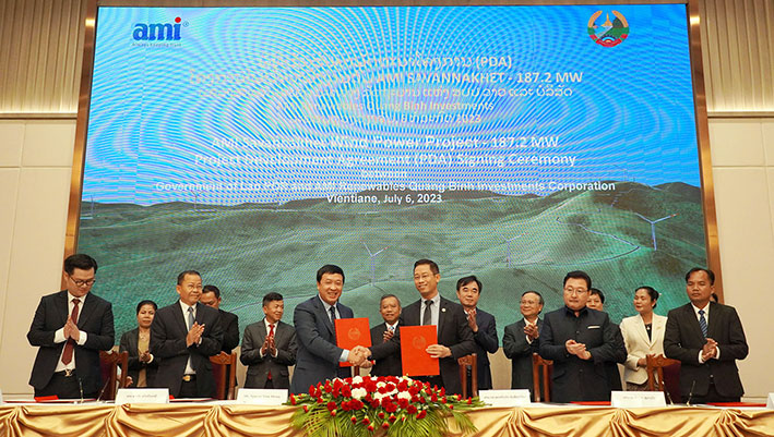 Đại diện Chính phủ nước CHDCND Lào và Công ty AMI Renewables Quảng Bình ký thỏa thuận phát triển Dự án Nhà máy điện gió AMI Savannakhet tại huyện Sê Pôn