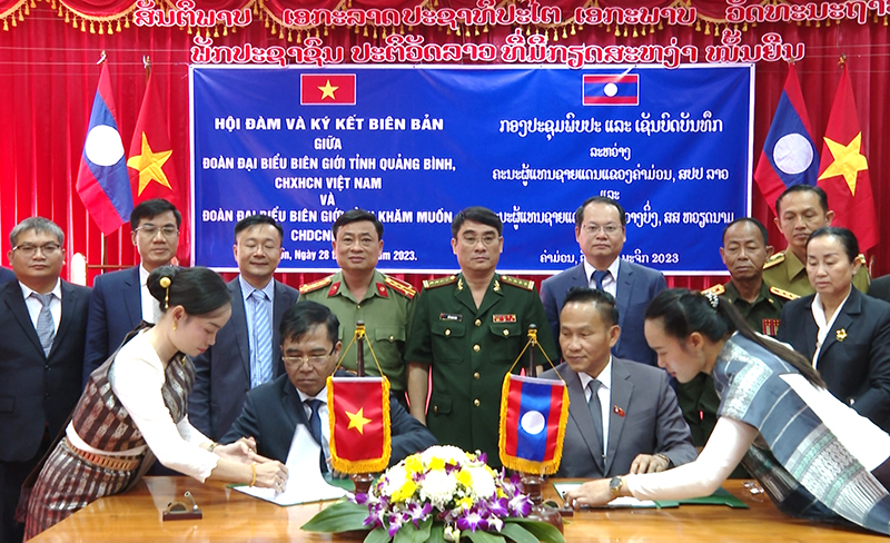 Công tác quản lý, bảo vệ chủ quyền, đảm bảo quốc phòng - an ninh biên giới Quốc gia tuyến biên giới đất liền trên địa bàn tỉnh được giữ vững, ổn định, chủ quyền biên giới được bảo vệ vững chắc. Chính quyền địa phương, quần chúng Nhân dân ở khu vực biên giới đã phối hợp tốt với lực lượng chức năng đóng trên địa bàn tăng cường công tác tuần tra, giám sát đường biên, giữ vững chủ quyền, đảm bảo quốc phòng - an ninh biên giới Quốc gia. Trong năm, Ban Chỉ đạo Công tác biên giới tỉnh đã thực hiện tốt công tác phối hợp với lực lượng bảo vệ biên giới các tỉnh bạn Lào có chung đường biên giới; duy trì, tổ chức tốt các hoạt động đối ngoại biên phòng và ngoại giao Nhân dân từ cấp tỉnh đến cấp địa phương nhằm củng cố, phát triển tình hữu nghị truyền thống, tình đoàn kết đặc biệt, hợp tác toàn diện giữa tỉnh Quảng Bình với các tỉnh nước bạn Lào; tăng cường phối hợp với lực lượng chức năng của hai tỉnh Khăm Muồn và Sạ-vẳn-na-khệt trong công tác đấu tranh phòng, chống tội phạm biên giới, kiểm soát dịch bệnh. Đặc biệt, cuối tháng 11/2023, Ban Chỉ đạo Công tác biên giới tỉnh Quảng Bình đã tổ chức đoàn sang hội đàm, ký biên bản với hai đoàn đại biểu biên giới của hai tỉnh Khăm Muồn, Sạ-vẳn-na-khệt nhằm tiếp tục hợp tác chặt chẽ trong công tác duy trì chế độ gặp gỡ, kịp thời thông báo cho nhau những tin tức, tình hình mới có liên quan đến công tác quản lý, bảo vệ biên giới và phòng, chống dịch bệnh; phối hợp trong nhiệm vụ phòng thủ bảo vệ chính quyền, bảo vệ an ninh chính trị, trật tự an toàn xã hội, góp phần xây dựng đường biên giới chung hòa bình, ổn định, hợp tác và phát triển.