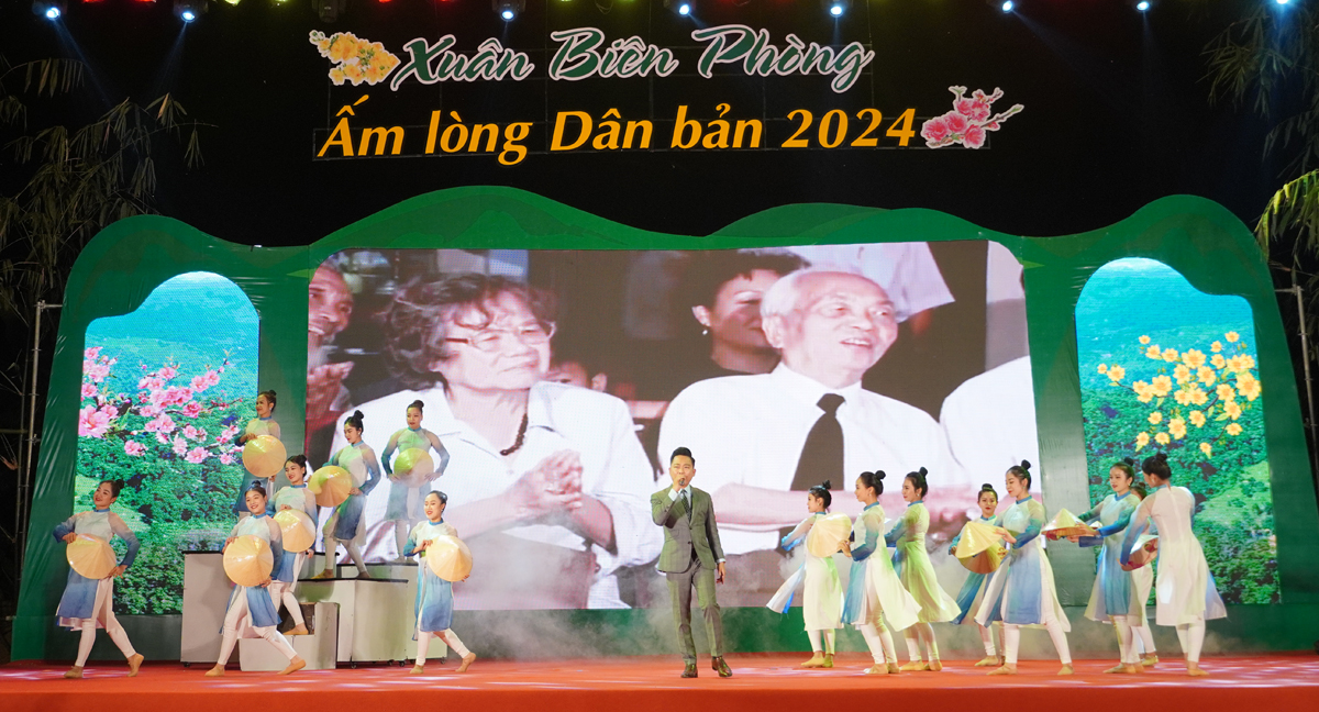 Biểu diễn các tiết mục văn nghệ phục vụ bà con dân bản tại xã Dân Hóa, huyện Minh Hóa trong chương trình “Xuân Biên phòng - Ấm lòng dân bản”
