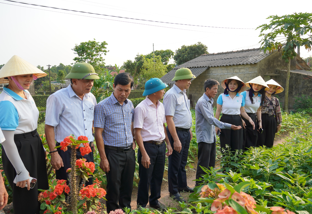 Các đại biểu tham quan Vườn mẫu của hộ gia đình tại thôn Xuân Lai