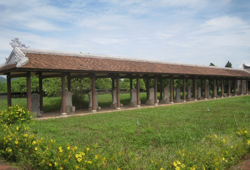 16 tấm bia bên trái ở Văn Miếu Huế.