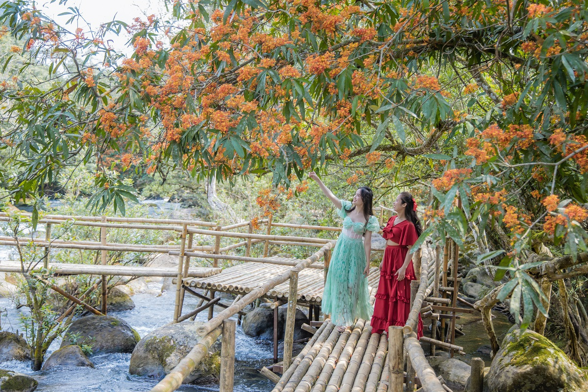 Nhờ có loài hoa tự nhiên này, cảnh quan suối Moọc trở nên đẹp hơn, rực rỡ và nên thơ. Ảnh: TTDL
