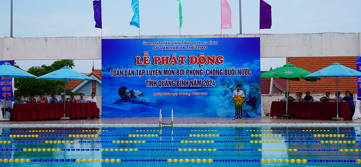 (Quang Binh Portal) - Chiều ngày 25/5/2024, tại Trung tâm Huấn luyện và thi đấu thể dục thể thao, Sở Văn hóa - Thể thao đã tổ chức lễ phát động toàn dân tập luyện môn bơi phòng, chống đuối nước năm 2024 quy mô cấp tỉnh.