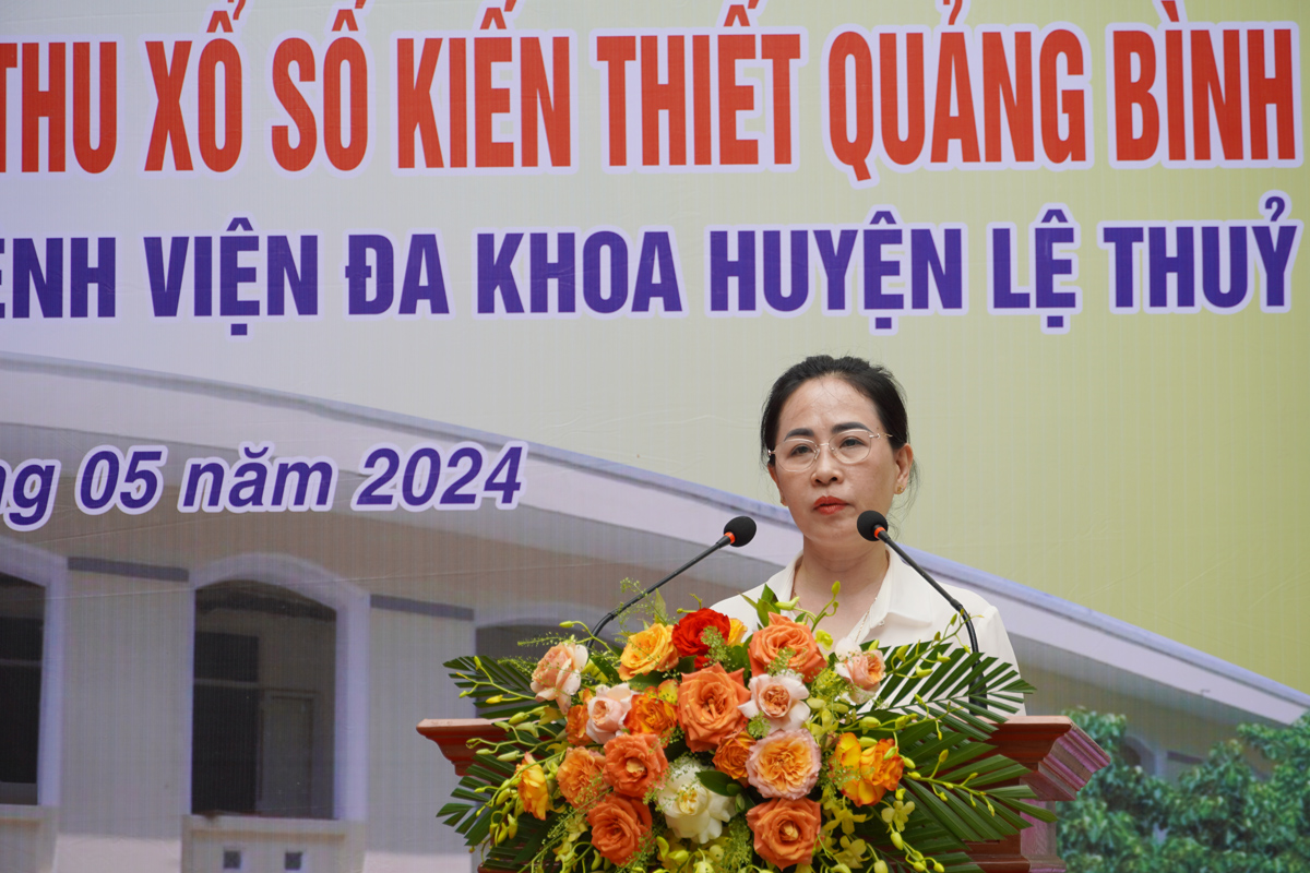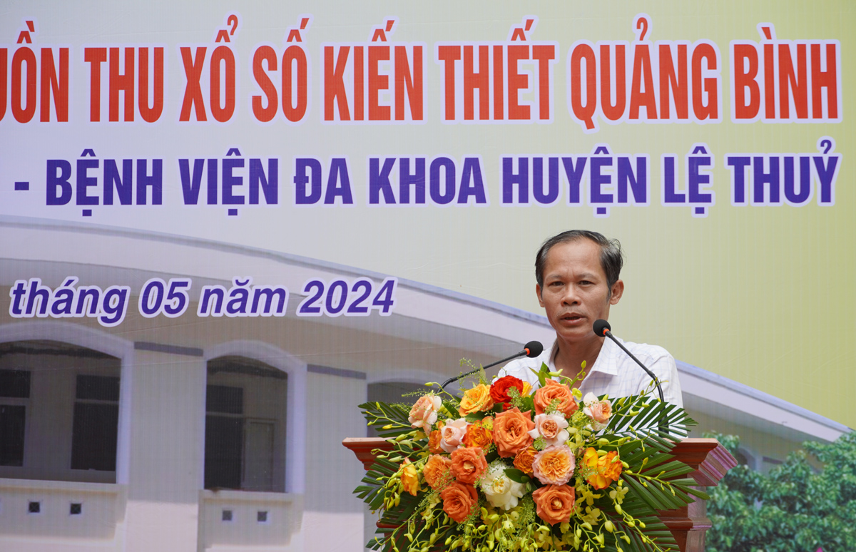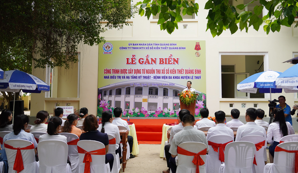 Nhà điều trị và hạ tầng kỹ thuật của Bệnh viện Đa khoa huyện Lệ Thủy có tổng mức đầu tư trên 11 tỷ đồng. Công trình được xây dựng bằng nguồn vốn ngân sách tỉnh, trong đó nguồn từ XSKT trên 10,5 tỷ đồng. Đây là công trình đầu tiên trên địa bàn huyện Lệ Thủy được lựa chọn để tổ chức gắn biển.