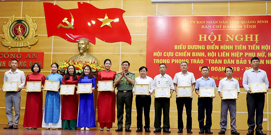 (Quang Binh Portal) - Sáng ngày 27/6/2024, Công an tỉnh phối hợp với Hội Cựu chiến binh (CCB), Hội Liên hiệp phụ nữ (LHPN), Hội Nông dân (ND) tỉnh tổ chức hội nghị biểu dương các điển hình tiên tiến trong phong trào "Toàn dân bảo vệ an ninh Tổ quốc" (TDBVANTQ) giai đoạn 2019 - 2024.