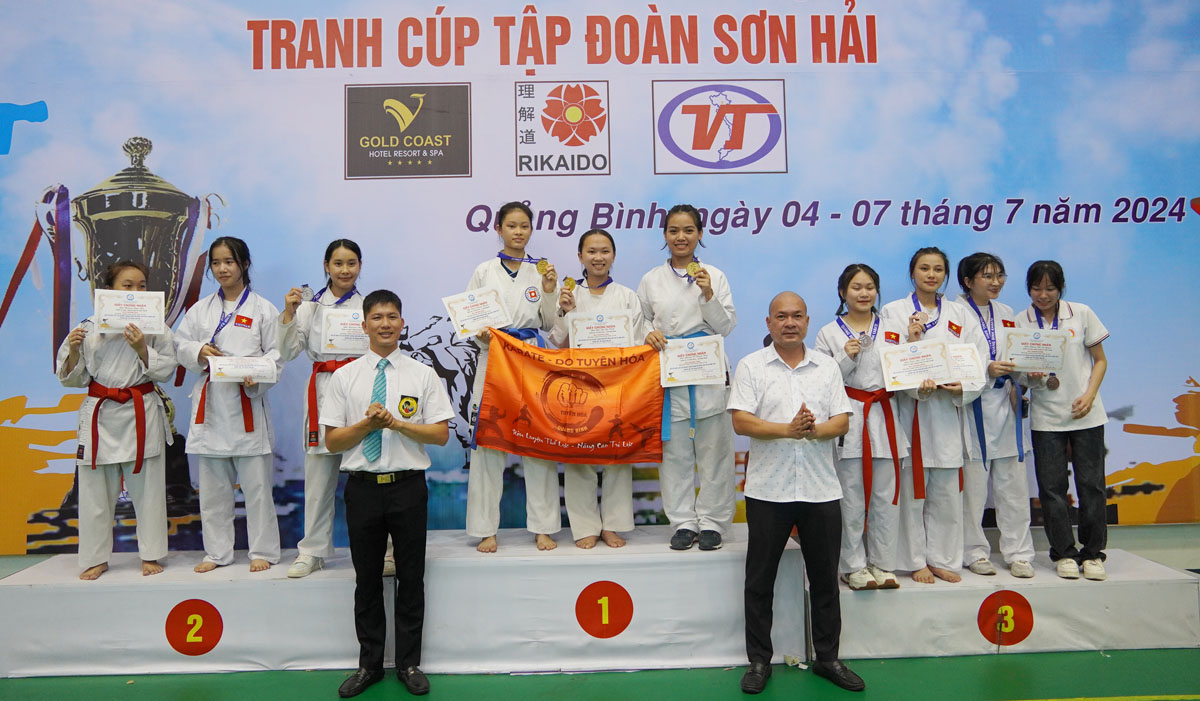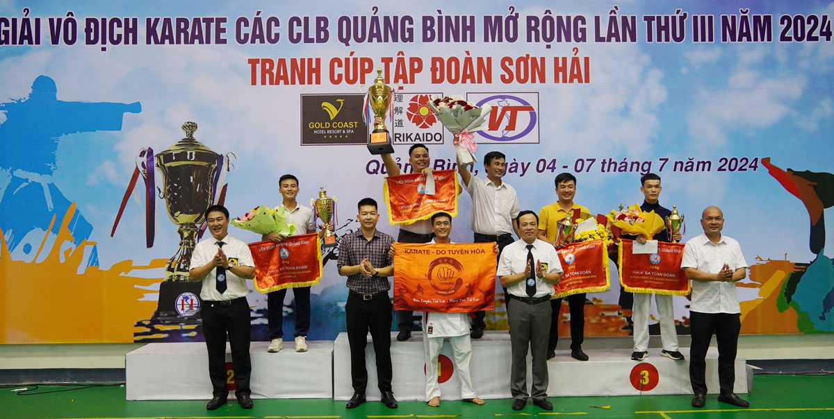 Kết quả, Ban Tổ chức giải đã trao các bộ huy chương cho vận động viên xuất sắc ở các lứa tuổi 06 - 08 tuổi, 09 - 11 tuổi, 12 - 14 tuổi, 15 - 17 tuổi và trên 18 tuổi. Theo đó, giải Nhất toàn đoàn là Câu lạc bộ Tuyên Hóa với 37 Huy chương Vàng, 16 Huy chương Bạc, 26 Huy chương Đồng, đoạt Cúp Tập đoàn Sơn Hải; giải Nhì thuộc về Câu lạc bộ Năng khiếu Nghĩa Dũng Đồng Hới; giải Ba là Câu lạc bộ Đồng Sơn và Câu lạc bộ Học viện Karate Việt Nam.