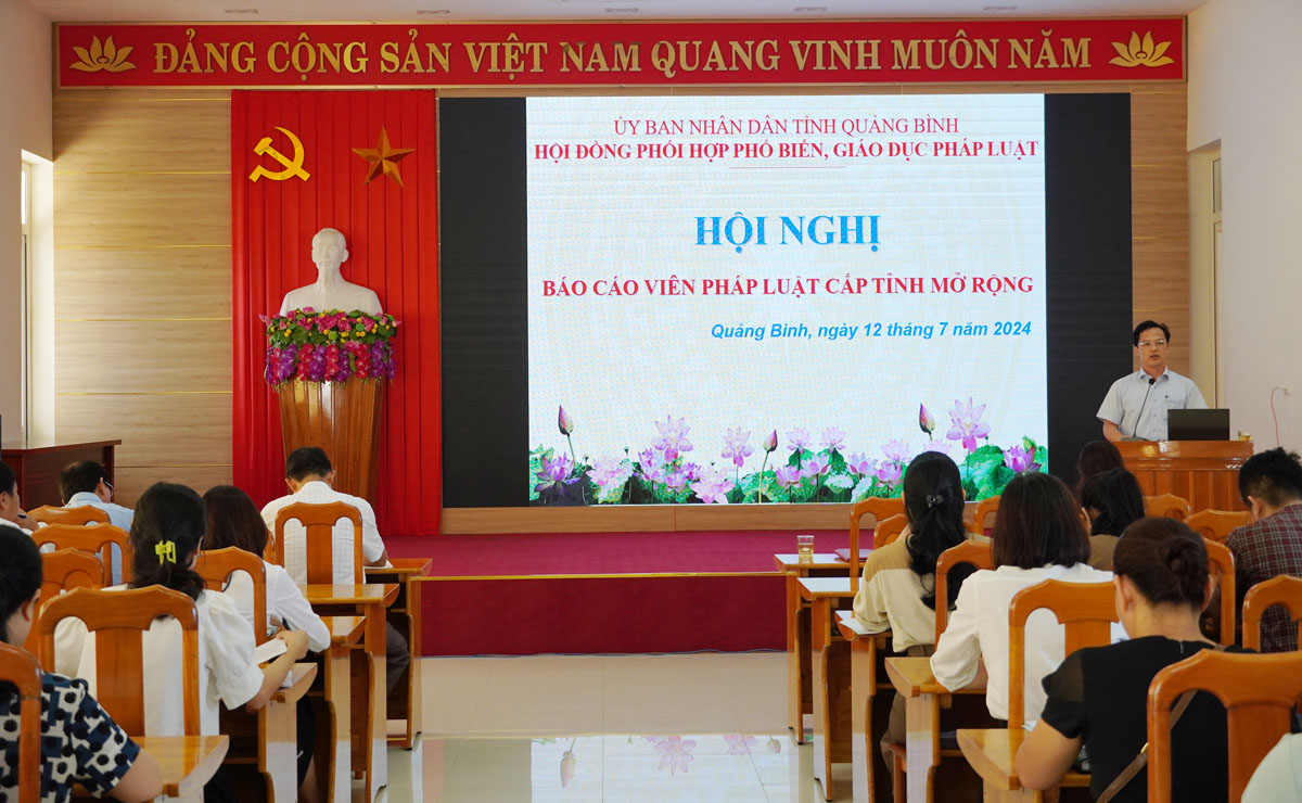 (Quang Binh Portal) - Ngày 12/7/2024, Hội đồng Phối hợp phổ biến, giáo dục pháp luật tỉnh tổ chức hội nghị báo cáo viên pháp luật cấp tỉnh mở rộng quý III/2024.
