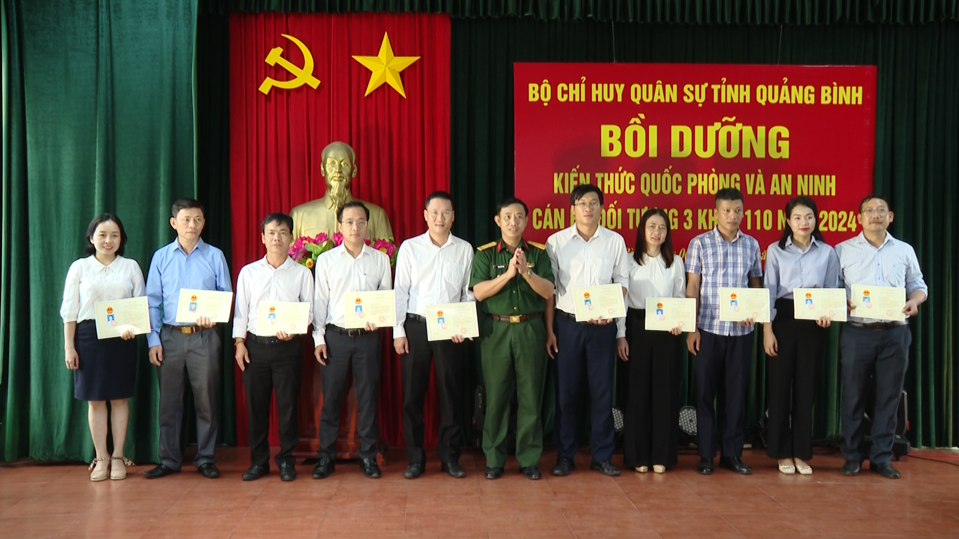 (Quang Binh Portal) - Chiều ngày 17/8/2024, Bộ Chỉ huy quân sự tỉnh đã tổ chức Bế giảng lớp bồi dưỡng kiến thức Quốc phòng – an ninh ( QP – AN) cho cán bộ thuộc đối tượng 3, khóa 110, năm 2024.