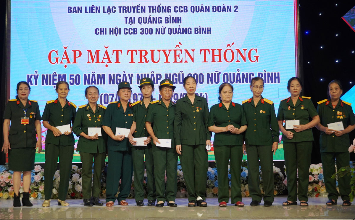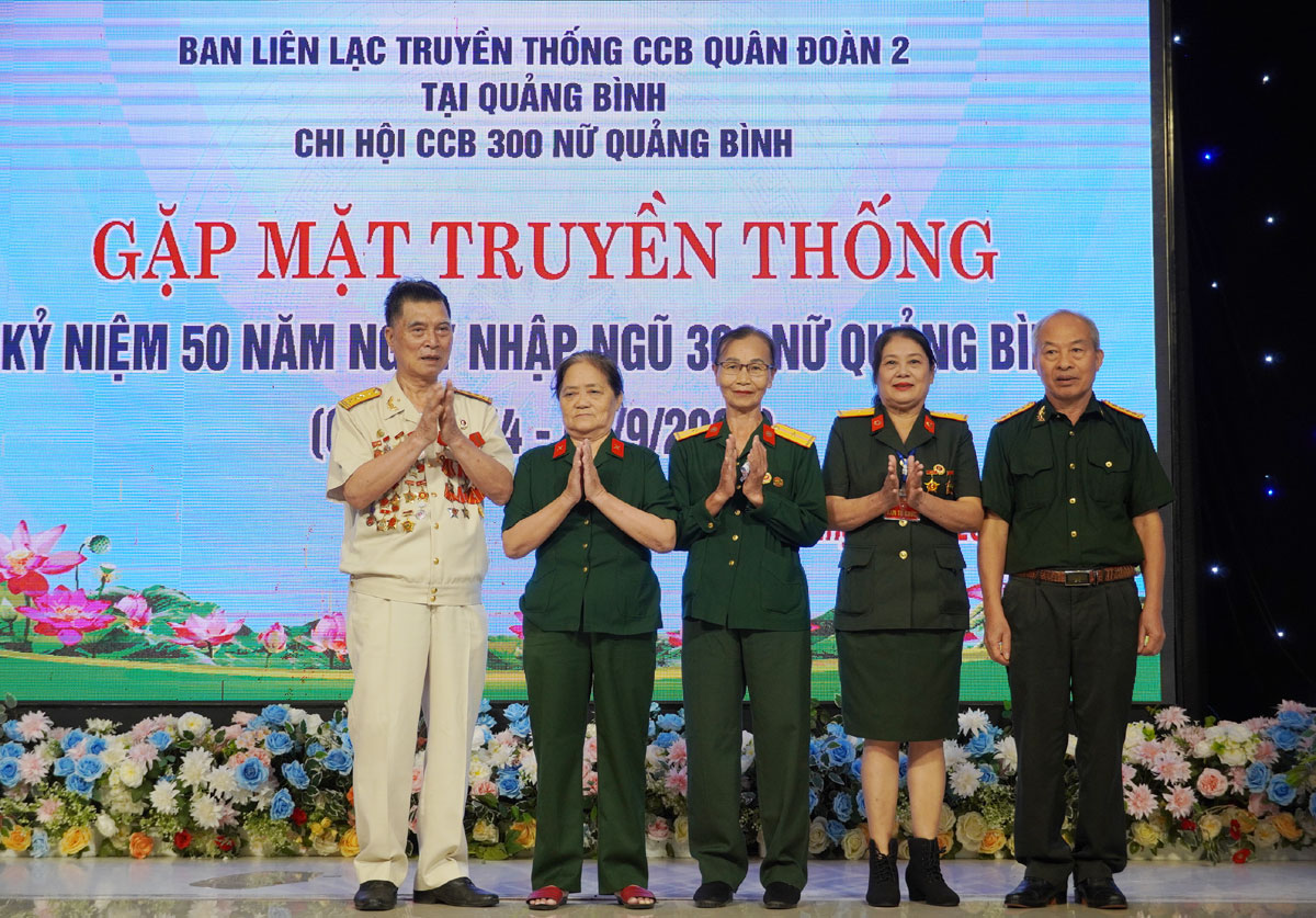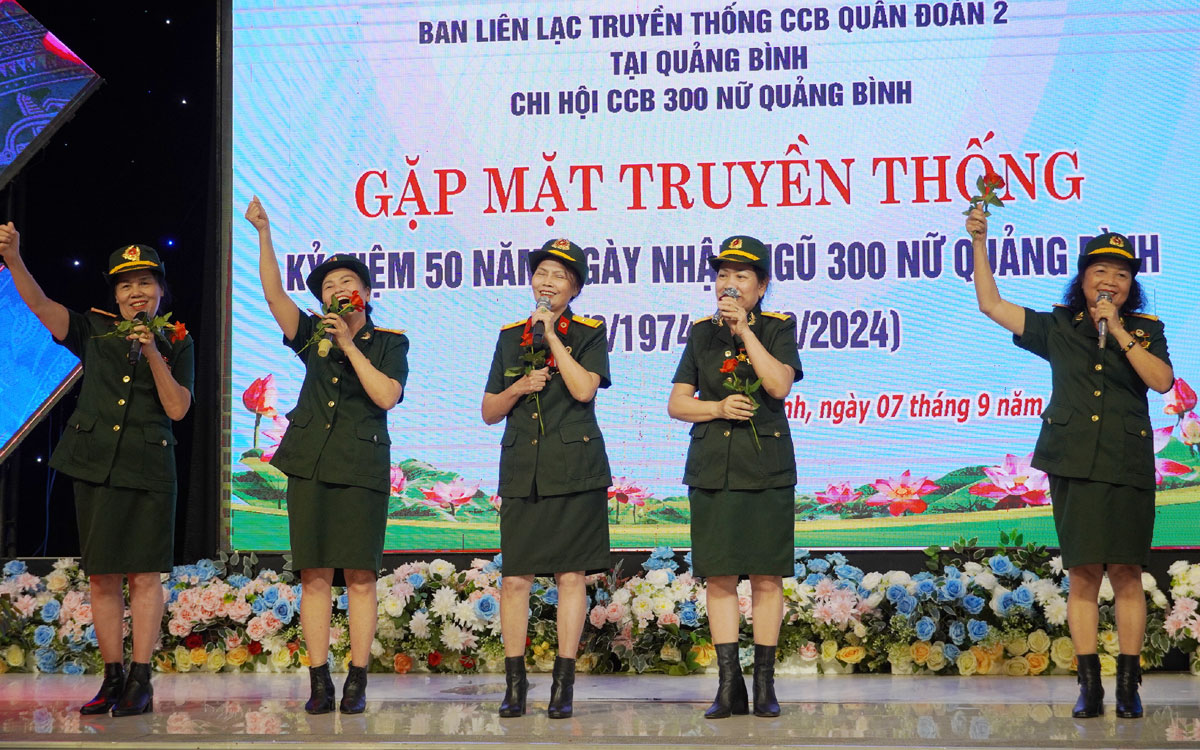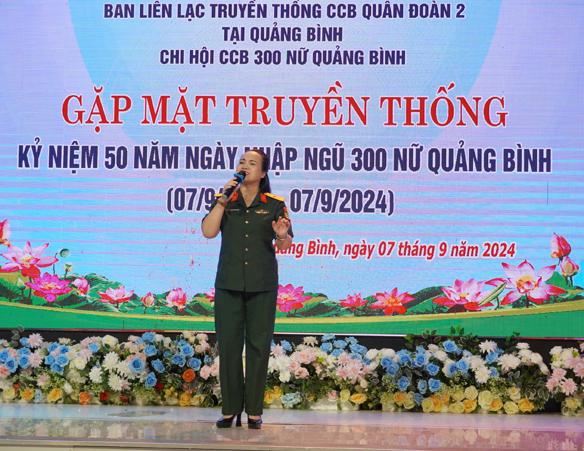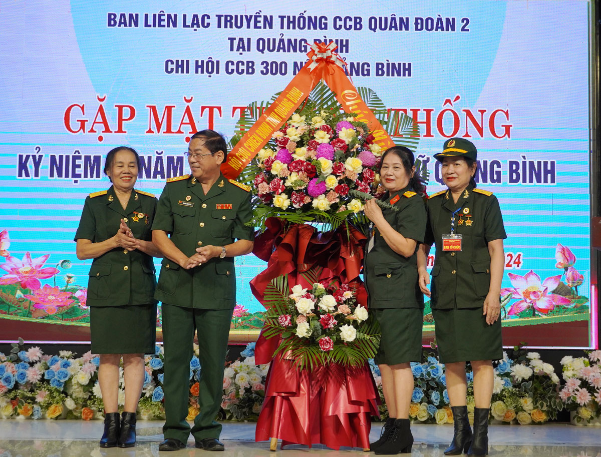 Tại buổi lễ, đại diện Hội CCB Quân đoàn 2, Hội CCB tỉnh và các đại biểu đã gửi lời chúc mừng đến 300 nữ CCB; đồng thời cùng nhau chia sẻ nhiều kỷ niệm về những năm tháng oanh liệt, hào hùng của quê hương, đất nước và dấu ấn đậm nét của những nữ quân nhân Quảng Bình nửa thế kỷ trước.
