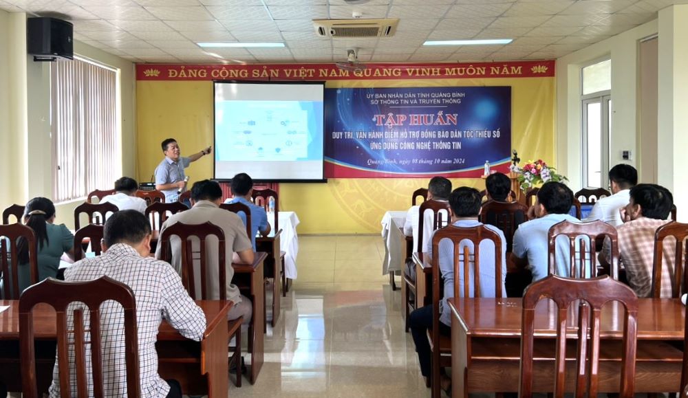 (Quang Binh Portal) - Sáng ngày 08/10/2024, Sở Thông tin và Truyền thông tổ chức tập huấn hướng dẫn thiết lập, duy trì, vận hành điểm hỗ trợ đồng bào dân tộc thiểu số ứng dụng công nghệ thông tin (CNTT) để phục vụ phát triển kinh tế, xã hội và bảo đảm an ninh trật tự.