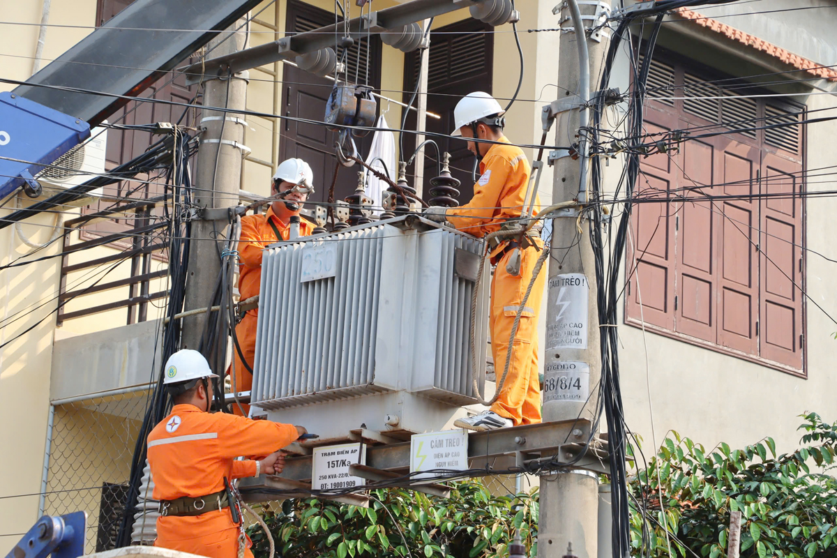 Công nhân Điện lực Quảng Bình tiến hành kiểm tra thiết bị điện