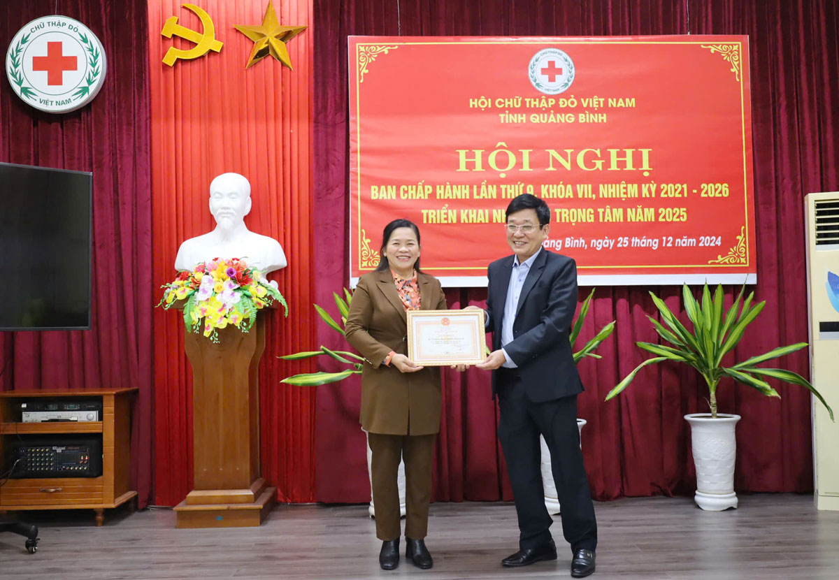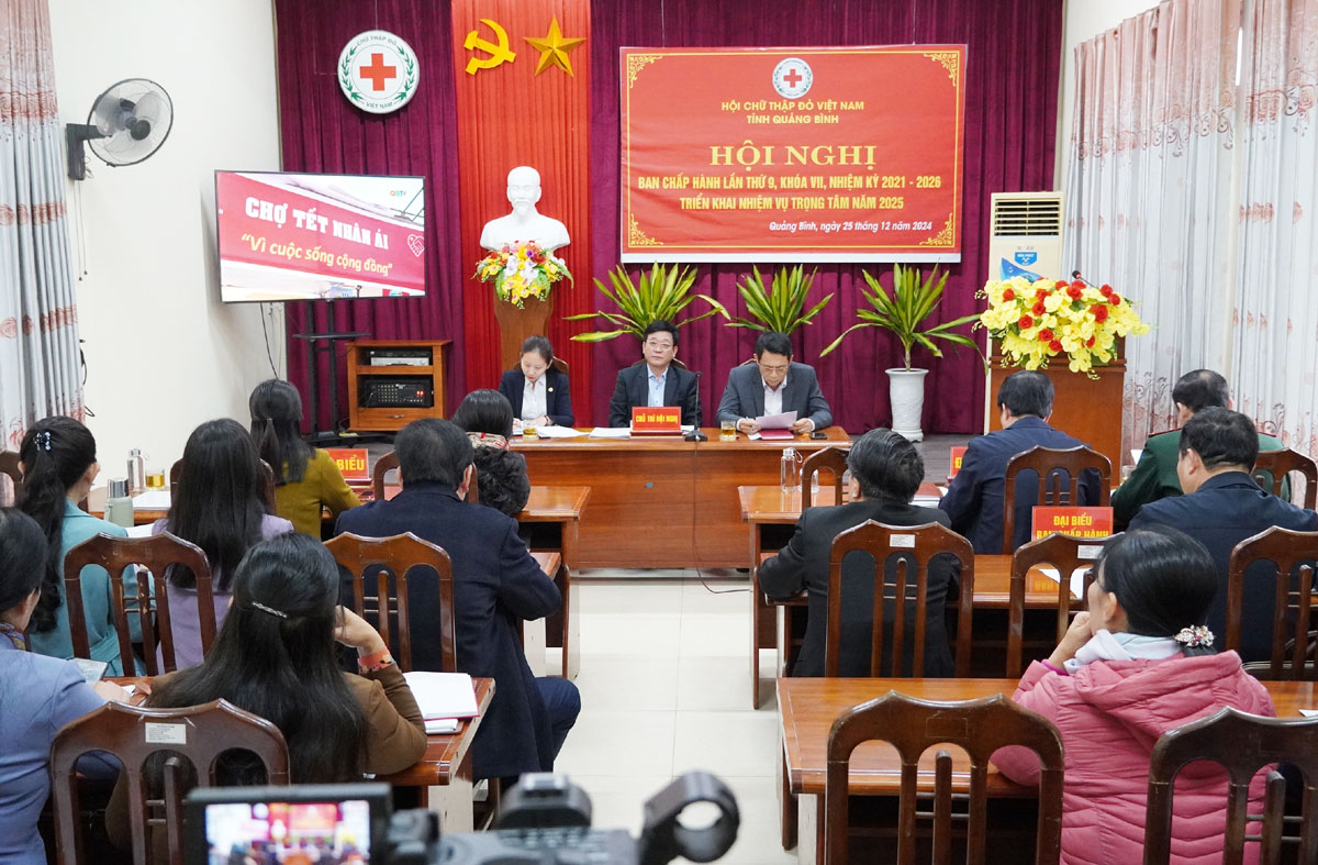 (Quang Binh Portal) - Chiều ngày 25/12/2024, Hội Chữ thập đỏ (CTĐ) tỉnh tổ chức hội nghị Ban Chấp hành Hội CTĐ tỉnh lần thứ 9, khóa VII, nhiệm kỳ 2021 - 2026 nhằm tổng kết phong trào CTĐ năm 2024 và triển khai nhiệm vụ năm 2025.