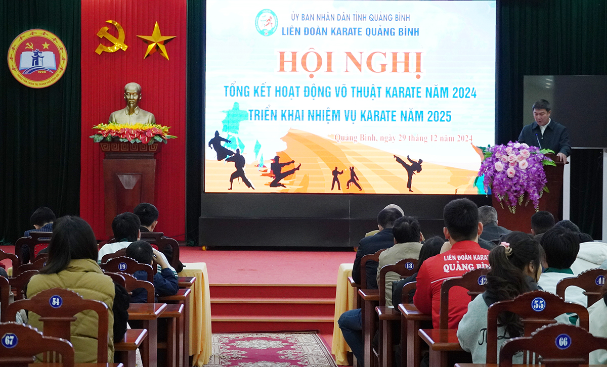 (Quang Binh Portal) - Sáng ngày 29/12/2024, Liên đoàn Karate tỉnh Quảng Bình đã tổ chức hội nghị tổng kết hoạt động võ thuật Karate năm 2024 và triển khai nhiệm vụ năm 2025.