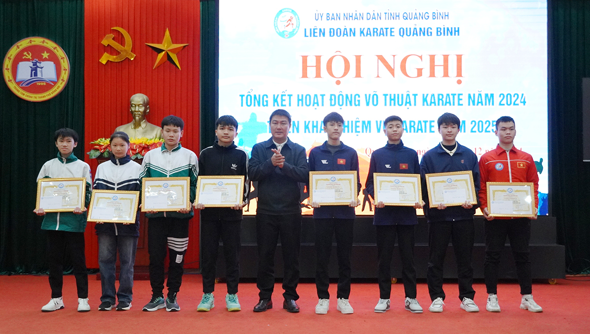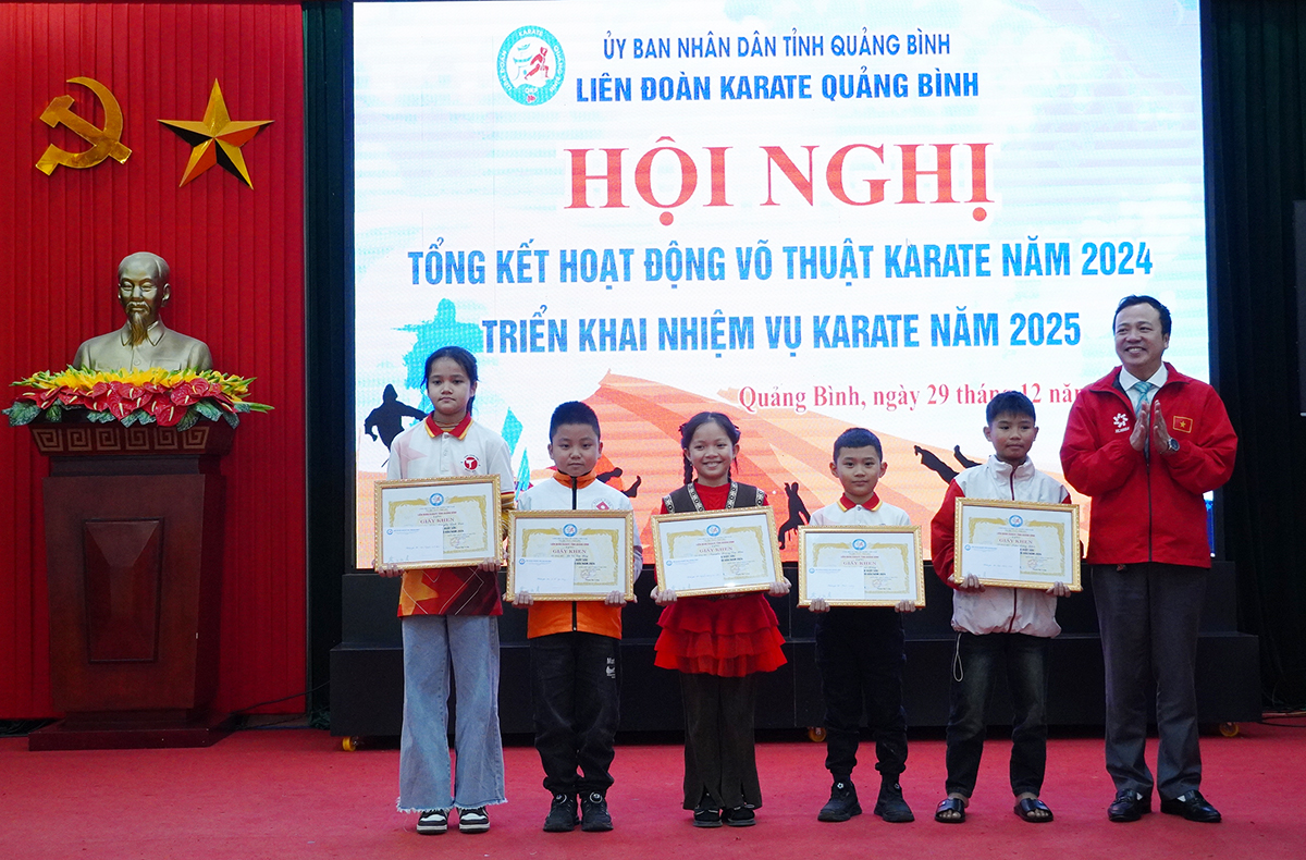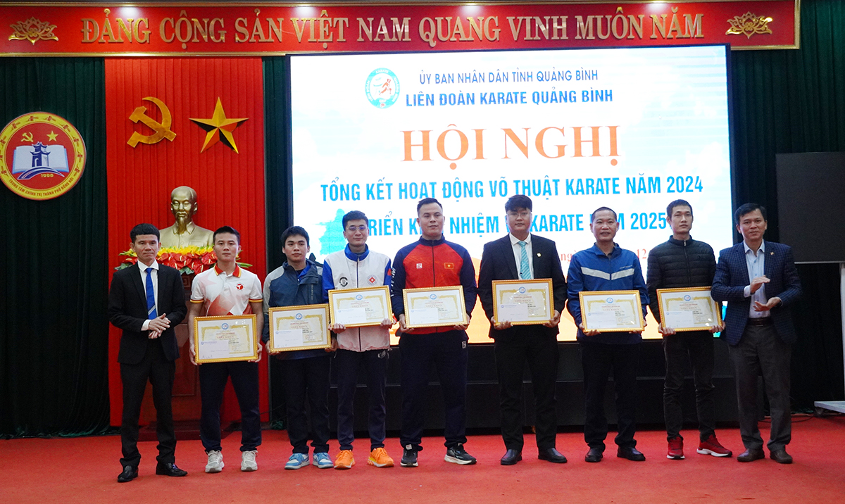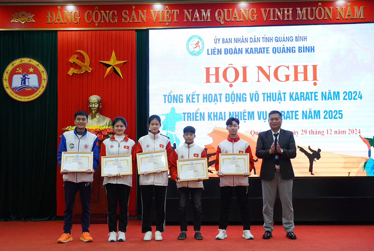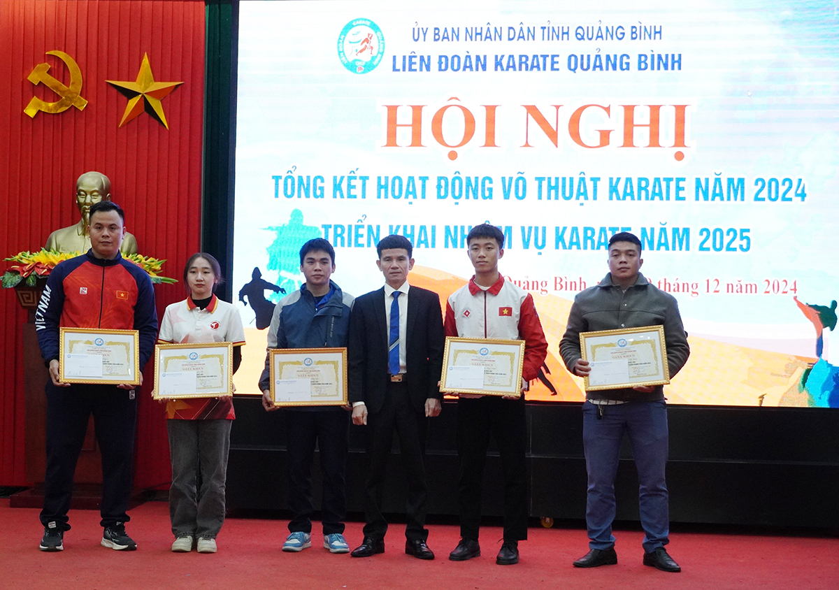 Nhân dịp này, Liên đoàn Karate tỉnh Quảng Bình đã khen thưởng cho 07 câu lạc bộ, 05 huấn luyện viên và 18 vận động viên có thành tích xuất sắc trong năm 2024.