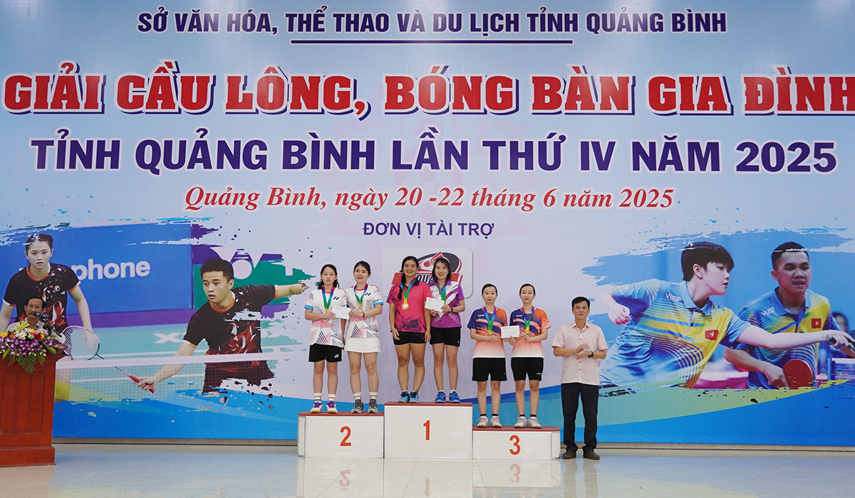 (Quang Binh Portal) - Trong 03 ngày từ 20 - 22/6/2025, Sở Văn hóa, Thể thao và Du lịch đã tổ chức Giải cầu lông, bóng bàn gia đình tỉnh Quảng Bình lần thứ IV, năm 2025. Đây là hoạt động hưởng ứng kỷ niệm 24 năm Ngày Gia đình Việt Nam (28/6/2001 - 28/6/2025) với chủ đề “Gia đình hạnh phúc - Quốc gia thịnh vượng”.