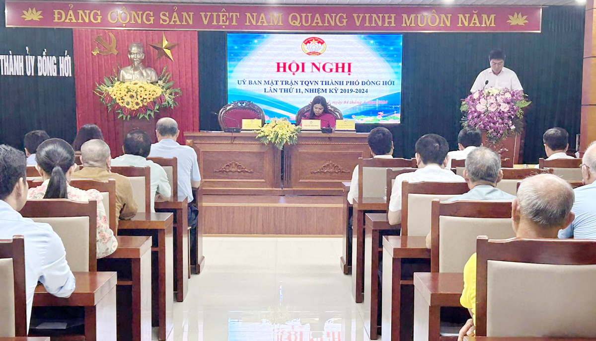 (Quang Binh Portal) - Chiều ngày 04/4/2024, Ủy ban MTTQVN thành phố Đồng Hới đã tổ chức hội nghị lần thứ 11, nhiệm kỳ 2019 - 2024. Đồng chí Trần Phong, Ủy viên Ban Thường vụ Tỉnh ủy, Bí thư Thành ủy Đồng Hới đã đến dự.