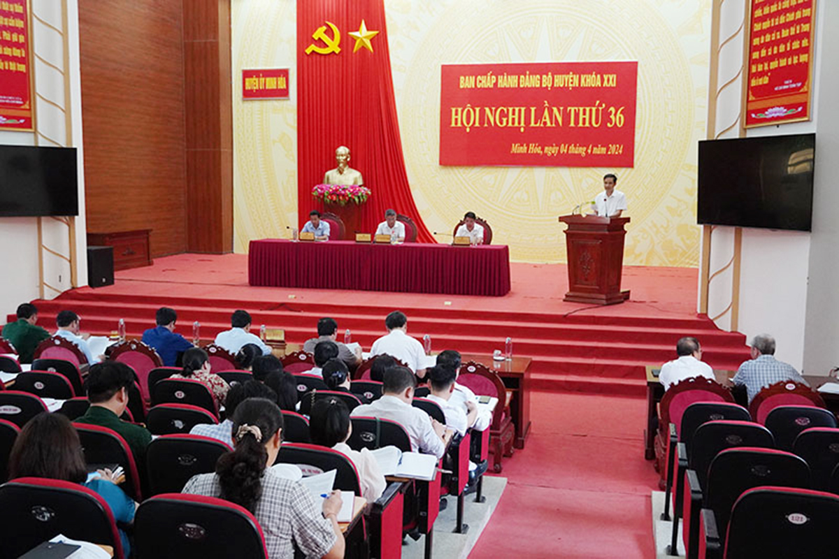 (Quang Binh Portal) - Tại hội nghị lần thứ 36 Ban Chấp hành Đảng bộ khóa XXI, nhiệm kỳ 2020 - 2025 tổ chức vào ngày 04/4/2024, Huyện ủy Minh Hóa đã bàn những giải pháp trọng tâm trong triển khai thực hiện nhiệm vụ quý II, trong đó, tập trung vào các lĩnh vực, như: Vấn đề quản lý đất đai; kiện toàn cán bộ; thu, chi ngân sách; nguồn vốn phát triển kinh tế…