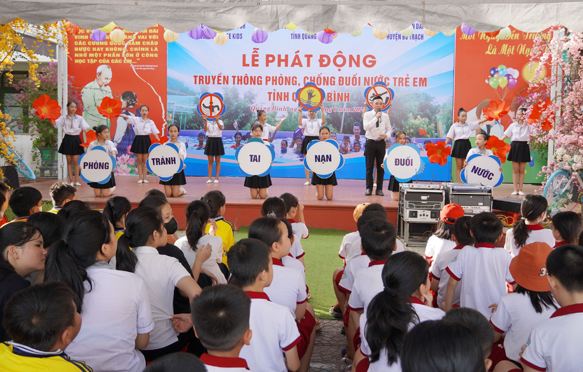 Tại buổi lễ, lãnh đạo Sở Lao động - Thương binh và Xã hội đã phát động chiến dịch PCĐN trẻ em, trong đó đề nghị các sở, ban, ngành, đoàn thể cấp tỉnh, địa phương, trường học, doanh nghiệp trên địa bàn tỉnh, đặc biệt là UBND huyện Bố Trạch và Tuyên Hóa, 10 xã triển khai Dự án tiếp tục tăng cường truyên truyền, giáo dục, phổ biến kiến thức, kỹ năng an toàn PCĐN trẻ em, làm tốt công tác cảnh báo tại những nơi có nguy cơ xảy ra đuối nước. Ngoài ra, các trường tổ chức tập huấn nâng cao năng lực cho đội ngũ cán bộ, giáo viên, những người trực tiếp chăm sóc trẻ em về kiến thức, kỹ năng bảo đảm an toàn cho trẻ em; phát huy vai trò, trách nhiệm của các cấp, ngành, gia đình, nhà trường và toàn xã hội trong việc phát triển phong trào dạy bơi, học bơi PCĐN trẻ em; tiếp tục xây dựng và nhân rộng mô hình “Ngôi nhà an toàn”, “Trường học an toàn”, “Cộng đồng an toàn” nhằm loại bỏ các nguy cơ gây đuối nước trẻ em, bảo đảm môi trường an toàn để trể em sống và phát triển…