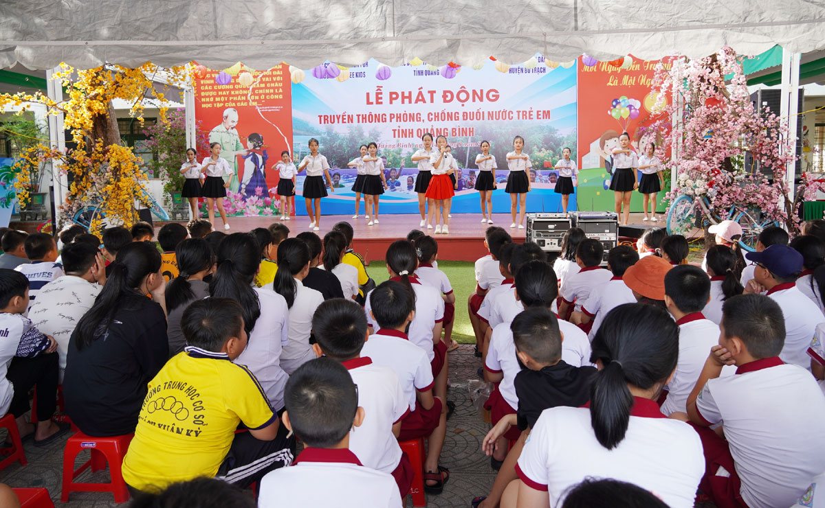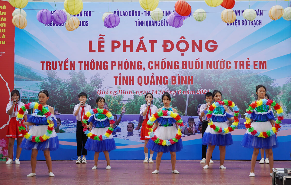 (Quang Binh Portal) - Chiều ngày 14/6/2024, tại Trường Tiểu học số 2 Hoàn Lão, thị trấn Hoàn Lão (Bố Trạch), Sở Lao động - Thương binh và Xã hội phối hợp với UBND huyện Bố Trạch và Tổ chức Campaign for Tobaco-Free Kids (CTFK), Hoa Kỳ tổ chức lễ phát động chiến dịch phòng, chống đuối nước (PCĐN) trẻ em năm 2024.