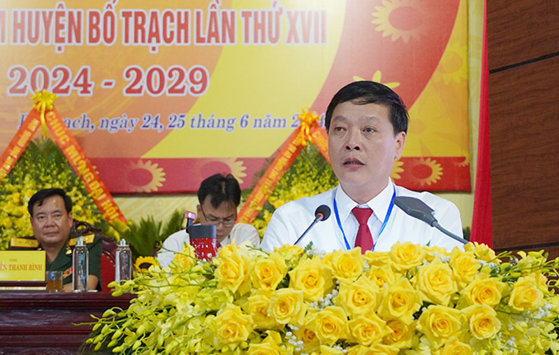 Bí thư Huyện ủy Bố Trạch Nguyễn Ngọc Tuấn phát biểu tại Đại hội