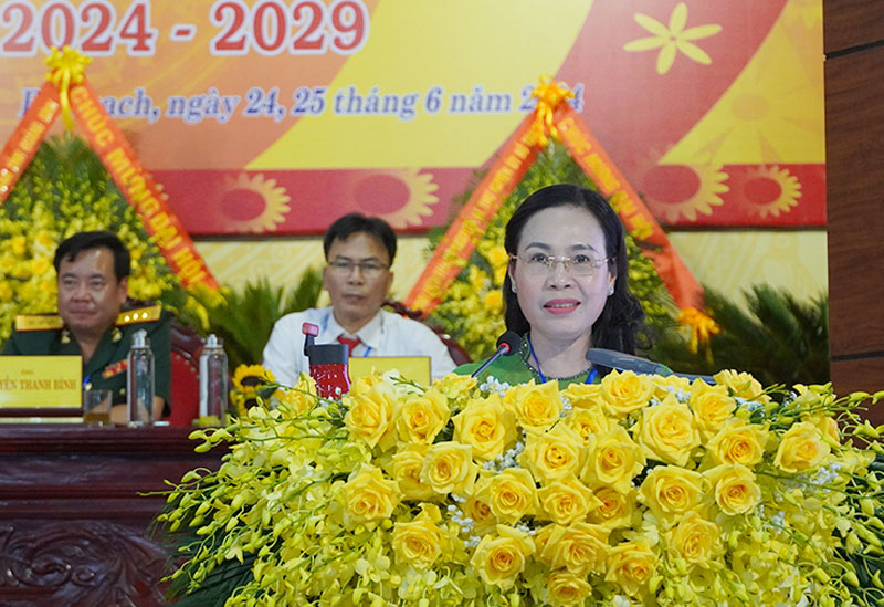 Phát biểu tại Đại hội, Chủ tịch Ủy ban MTTQVN tỉnh biểu dương những kết quả đạt được của MTTQVN các cấp huyện nhiệm kỳ qua; đồng thời đề nghị các cấp Mặt trận trong toàn huyện tiếp tục phát huy những kết quả đã đạt được, khắc phục tồn tại, hạn chế, tập trung thực hiện Nghị quyết Đại hội và những định hướng đã đề ra. Đồng chí cũng tỉnh yêu cầu các cấp Mặt trận huyện tiếp tục nâng cao chất lượng, hiệu quả các cuộc vận động, phong trào thi đua yêu nước do Mặt trận phát động, trọng tâm là cuộc vận động “Toàn dân đoàn kết xây dựng nông thôn mới, đô thị văn minh”, phong trào thi đua chung tay “Vì người nghèo”...; nâng cao chất lượng, hiệu quả hoạt động giám sát, phản biện xã hội, góp ý xây dựng Đảng, chính quyền vững mạnh; đổi mới nội dung, phương thức hoạt động theo hướng rõ mục tiêu, rõ nhiệm vụ, sát với cơ sở và cộng đồng dân cư, phù hợp với nguyện vọng Nhân dân; quan tâm chất lượng đội ngũ cán bộ Mặt trận đáp ứng yêu cầu, nhiệm vụ trong tình hình mới.
