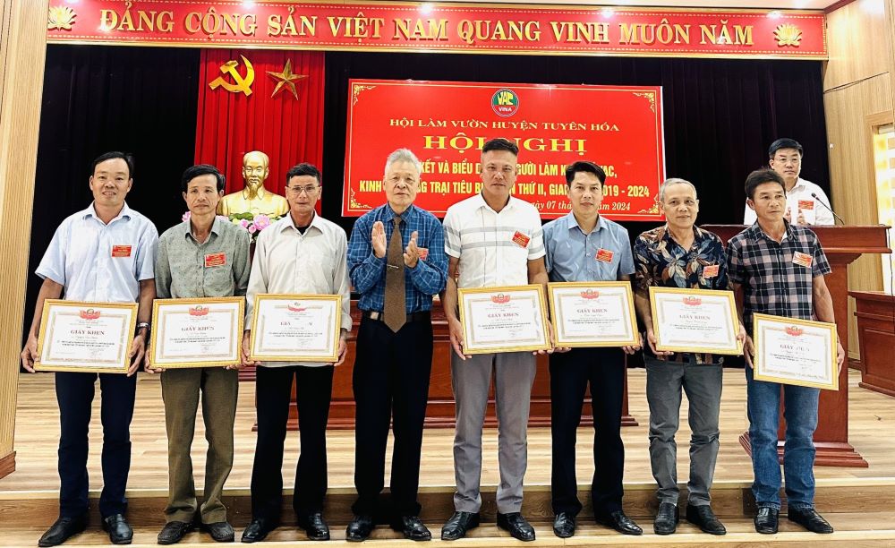 Dịp này, nhiều tập thể, cá nhân được UBND huyện Tuyên Hóa, Hội Làm vườn huyện tặng Giấy khen vì đã có thành tích trong phong trào “Người làm kinh tế VAC, kinh tế trang trại tiêu biểu lần thứ II, giai đoạn 2019 - 2024”.