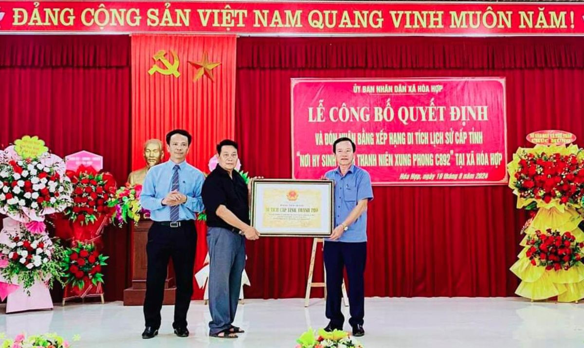 Công bố quyết định và đón nhận Bằng xếp hạng Di tích lịch sử cấp tỉnh “nơi hy sinh của 8 thanh niên xung phong C892, ngày 19/8/1972 tại xã Hóa Hợp”