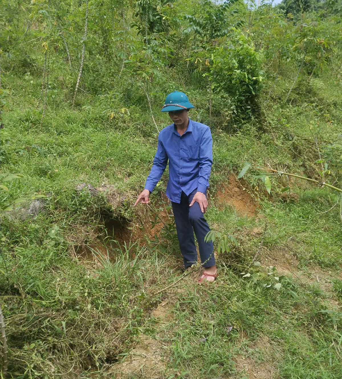 Khu vực núi sau bản Tân Ly xuất hiện các vết nứt có chiều rộng từ 0,5-1m
