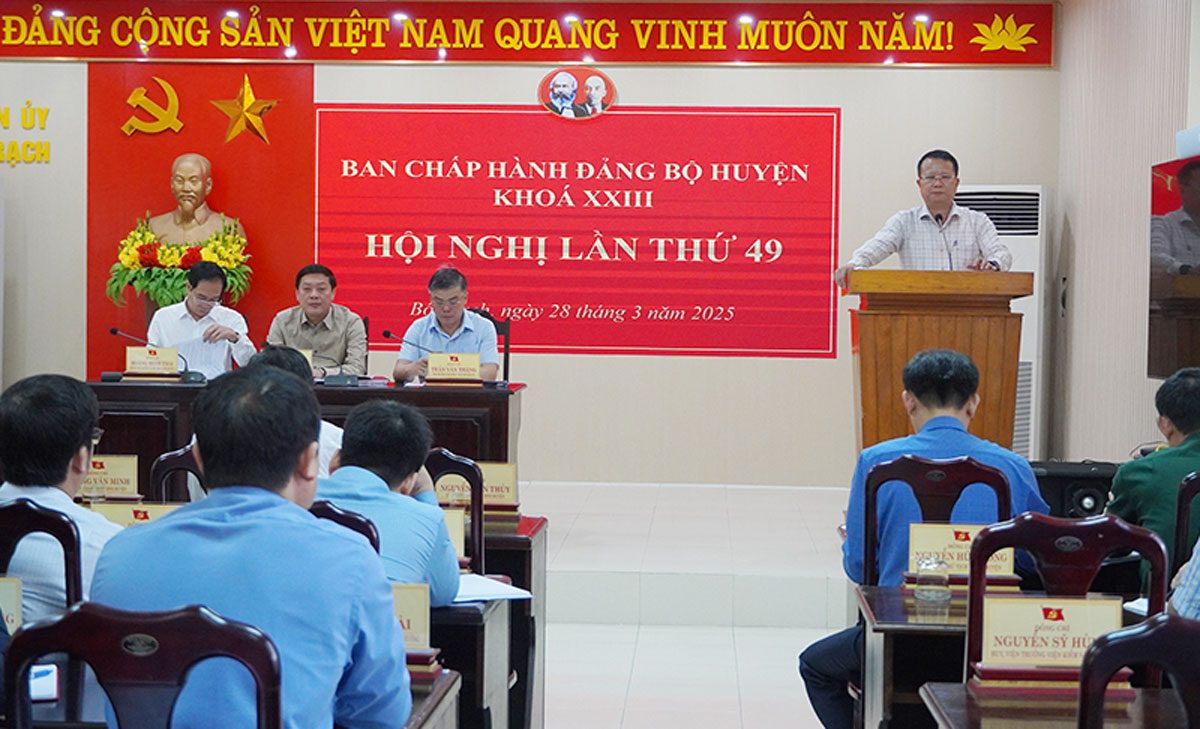 (Quang Binh Portal) - Sáng ngày 28/3/2025, Ban Chấp hành (BCH) Đảng bộ huyện Bố Trạch tổ chức hội nghị phiên thứ 49 (mở rộng) đánh giá kết quả thực hiện nhiệm vụ chính trị quý I/2025, triển khai nhiệm vụ quý II/2025 và cho ý kiến một số nội dung theo thẩm quyền.