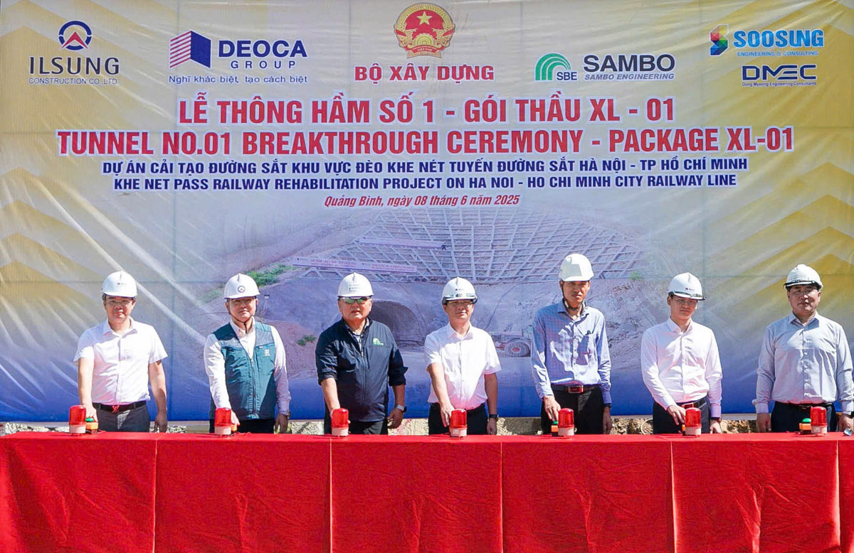 (Quang Binh Portal) - Ngày 08/6/2025, hầm đường sắt số 1 thuộc gói thầu XL01 - Dự án Cải tạo tuyến đường sắt qua đèo Khe Nét chính thức được thông hầm sau hơn 16 tháng thi công liên tục. Đây là một trong hai hạng mục hầm quan trọng của Dự án, đánh dấu mốc tiến độ trong quá trình nâng cấp tuyến đường sắt Bắc - Nam.